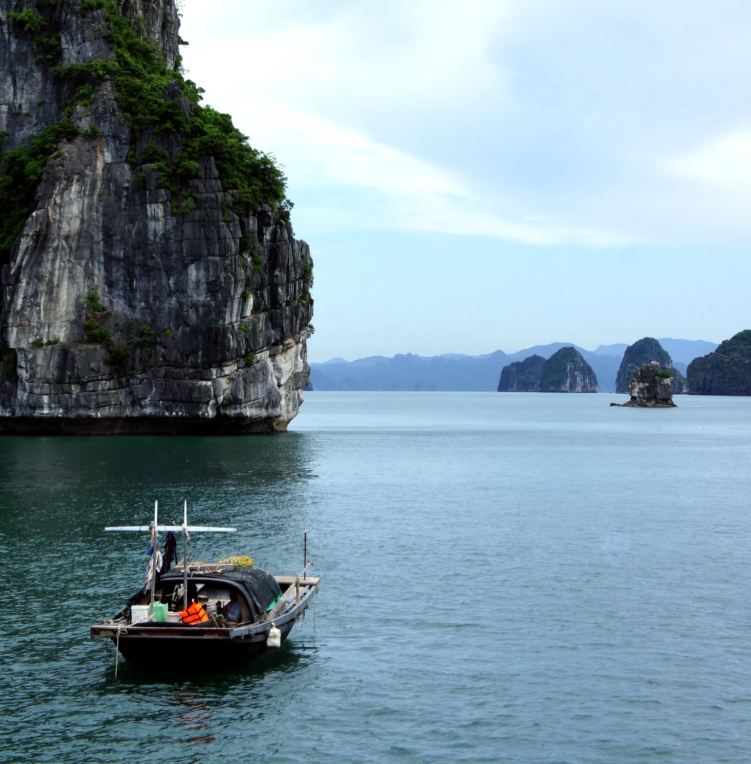 A local fishing boat in the gulf of Tonkin, Vietnam.